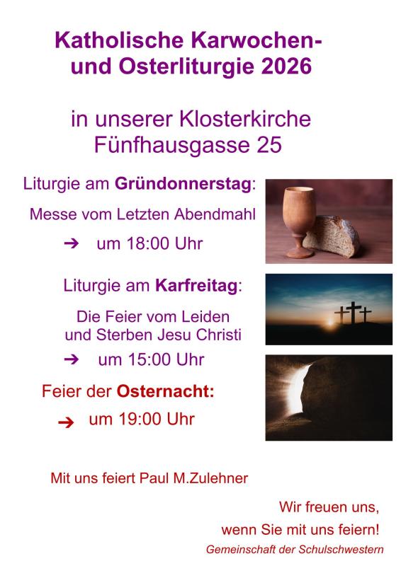 Herzliche Einladung zur Mitfeier der Karwochen-und Osterliturgie mit der Schwesterngemeinschaft!   mehr lesen »