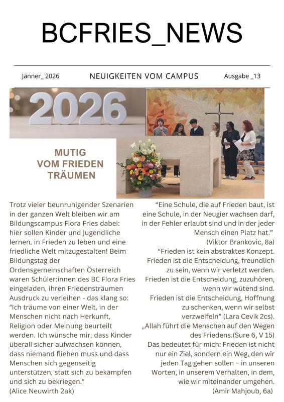 Bis auf den letzten Platz gefüllt war die Schulkapelle am Bildungscampus Flora Fries, als sich die Schulgemeinschaft wie jedes Jahr am Mittwoch in der dritten Jännerwoche um die Mittagszeit zum... mehr lesen »