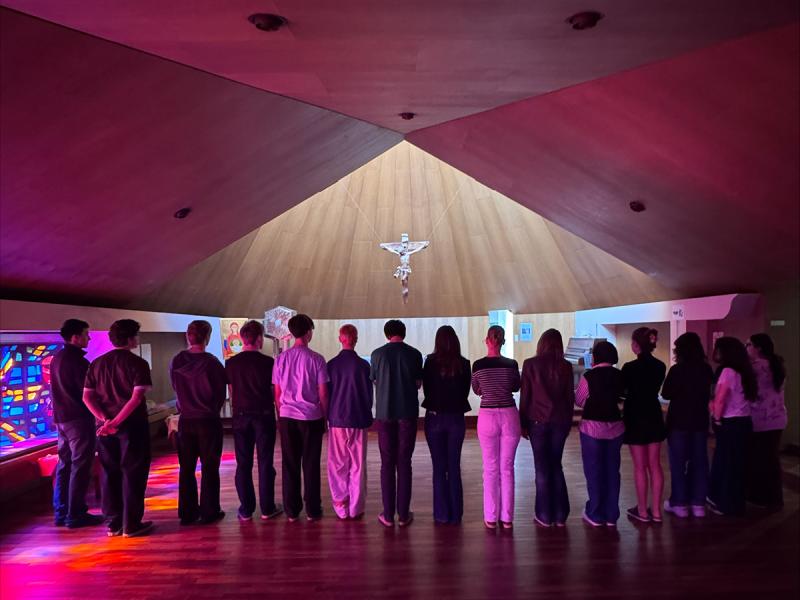 Am Mittwoch haben die Schüler:innen der 8B den Platz in unserer hauseigenen Kapelle genutzt, um mit unserer Sprachassistentin Chloe im Englischunterricht als Einleitung zum Thema ‚Fringe groups’... mehr lesen »