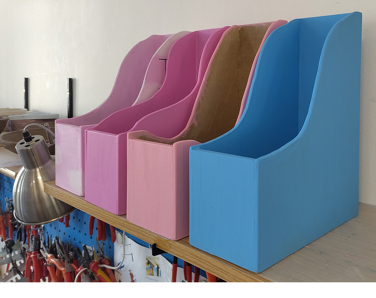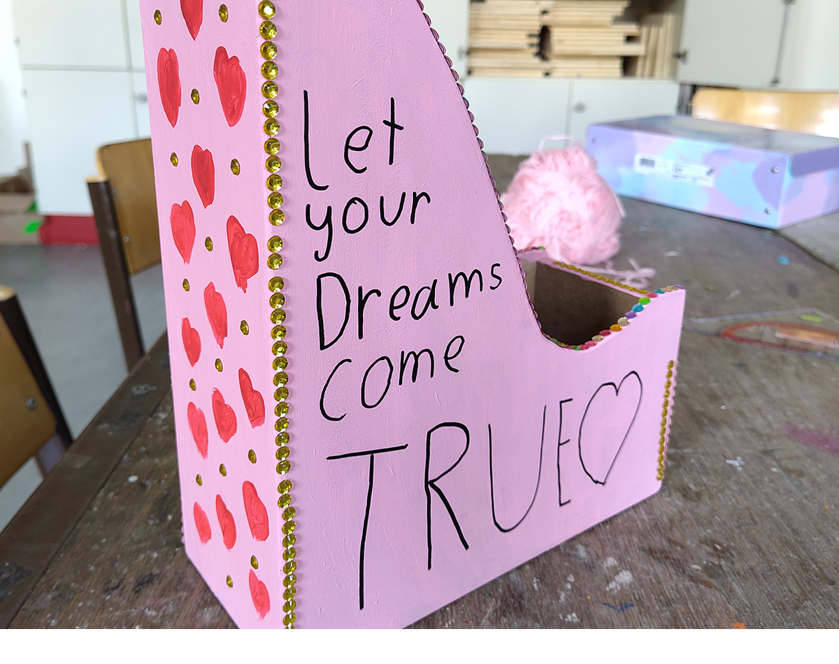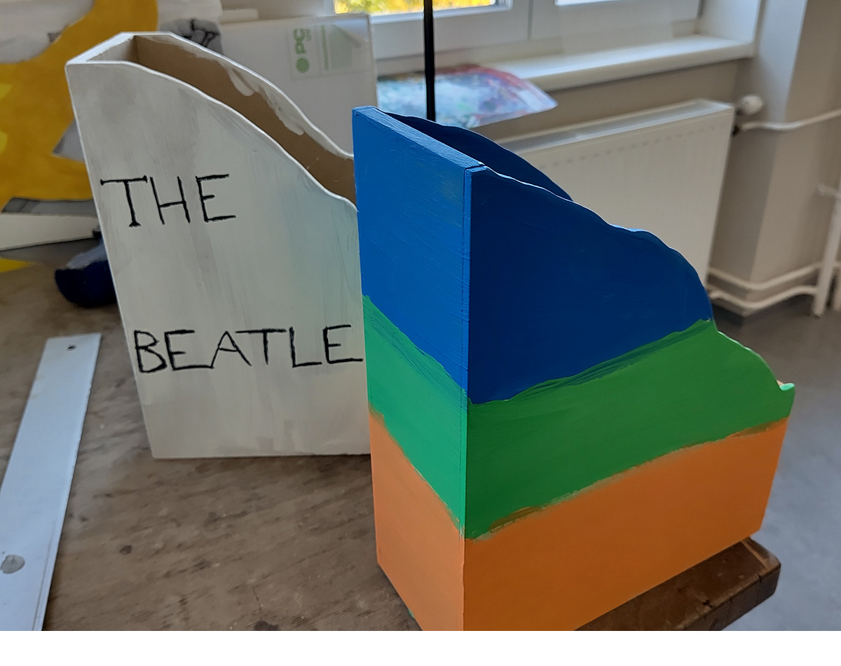 Im Rahmen des Technik und Design Unterrichts der 1B und 1C sind viele bunte Standordner für die Klasse bzw. für zu Hause entstanden.