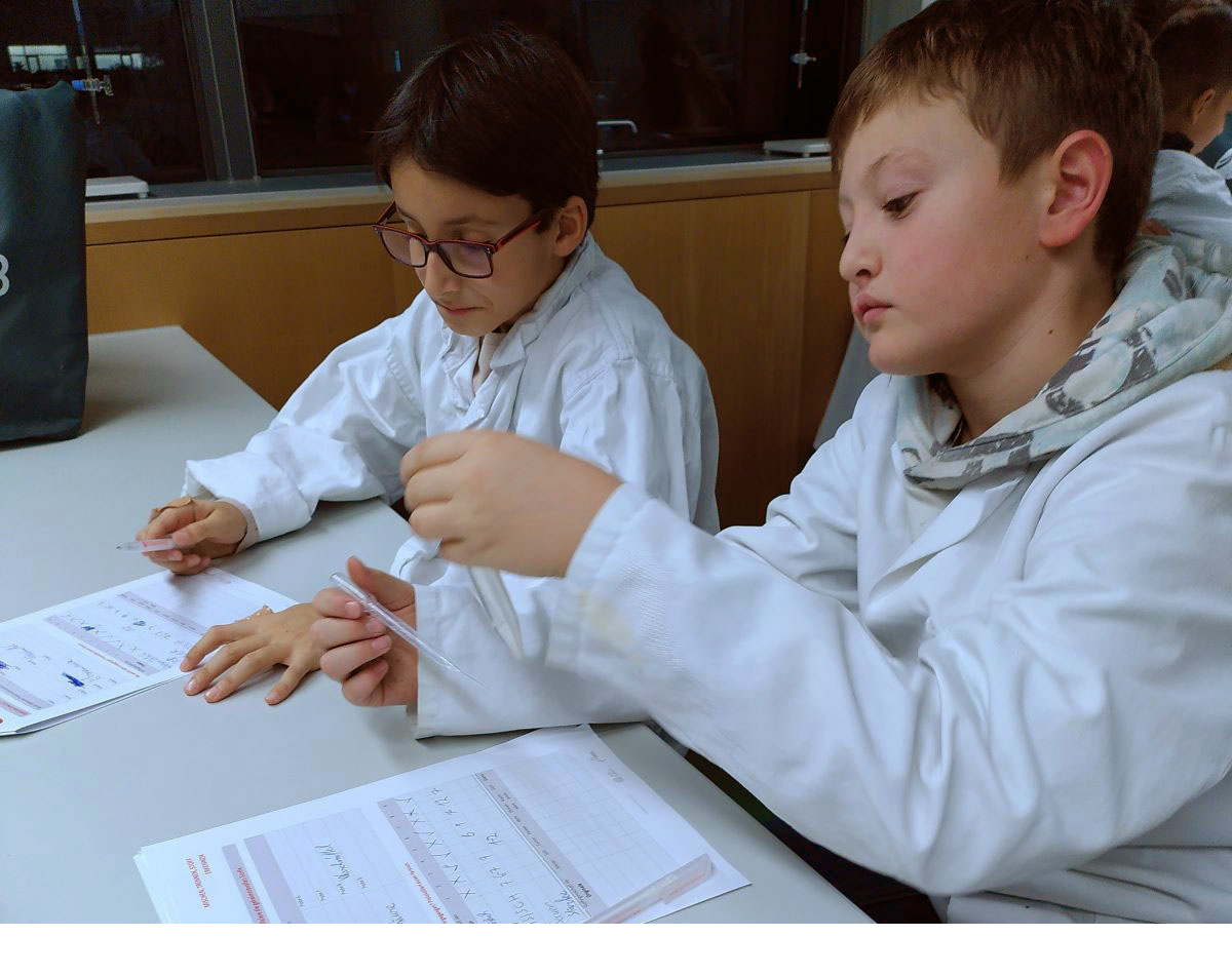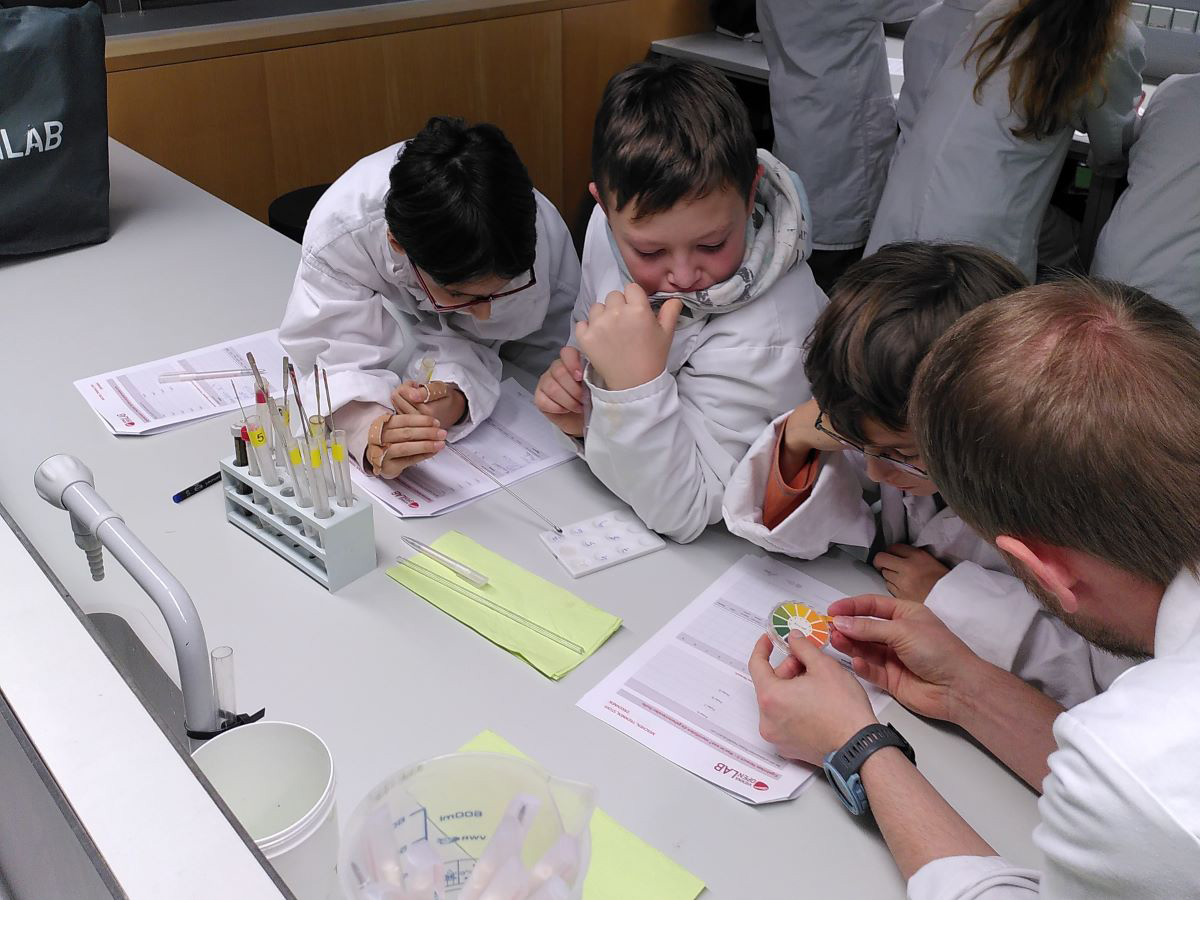 Das Ergebnis des Lehrausgangs: Alle Stoffe richtig erkannt, Experimente geglückt. Und die Labormäntel stehen ihnen nebenbei auch ganz ausgezeichnet.