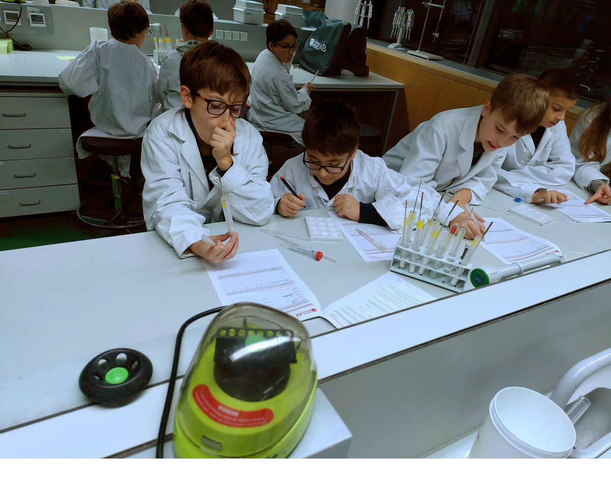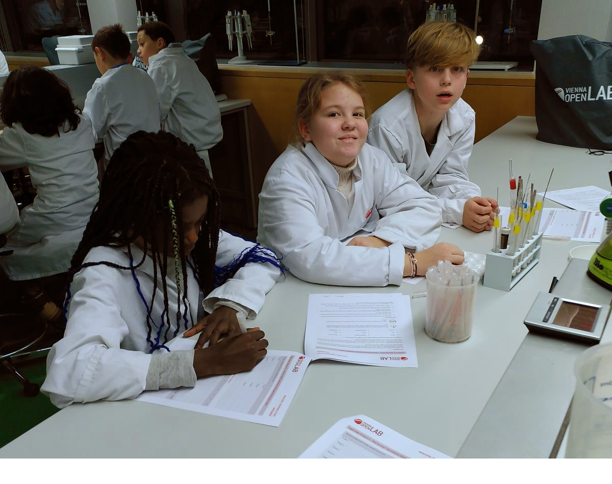 Am 1. Dezember besuchte die 1.B im Zuge des MINT-Unterrichts das Vienna Open Lab. Thema des Nachmittags: Mischen, Trennen, Stoff erkennen! In einem dreistündigen Programm lernten die Schüler:innen, nach welchen Kriterien Stoffe eingeteilt werden, wie man den Farbstoff aus Cola herausbekommt und wie man weißes Waschpulver von Zucker oder Salz unterscheiden kann (ohne es zu kosten). Es wurde viel experimentiert und selbst ausprobiert. Mittels Stärkenachweis und pH-Messungen wurden die unterschiedlichsten Stoffe von unseren Forschungsteams unter die Lupe genommen und zielsicher bestimmt.