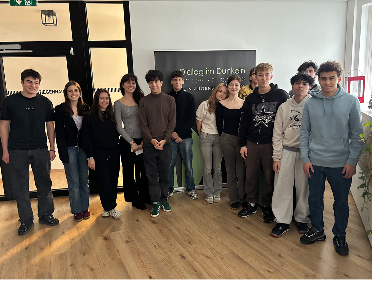 Die 7C besuchte im Rahmen des Psychologie-Unterrichts die Ausstellung Dialog im Dunkeln. In Kleingruppen wurden die Schüler:innen von blinden und sehbehinderten Guides durch völlig abgedunkelte Räume begleitet. In diesen waren Alltagssituationen nachgestellt, die durch die Lichtlosigkeit zum reizvollen Abenteuer wurden …