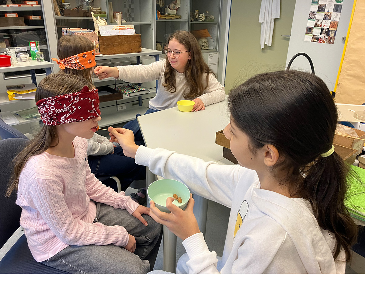 Die Schüler:innen der 1C nahmen am Projekt „Food for the mood“, Essen für die (gute) Laune, teil und überlegten, welche Essgewohnheiten für sie zutreffen, bei wem welche Jause in der Schultasche (und im Bauch ;-)) landet und wer eigentlich vor einem Schultag frühstückt. In einem Online-Quiz wurden verschiedene Nahrungsmittel und Getränke bewertet. Danach hatten die Geschmacksknospen der Schüler:innen bei einer Blindverkostung von (Bio-)Lebensmitteln (Vollkornbrot, gekochte Erdäpfel, Karotten, Gurke usw.) viel zu tun. Da hatten dann alle gute Laune!