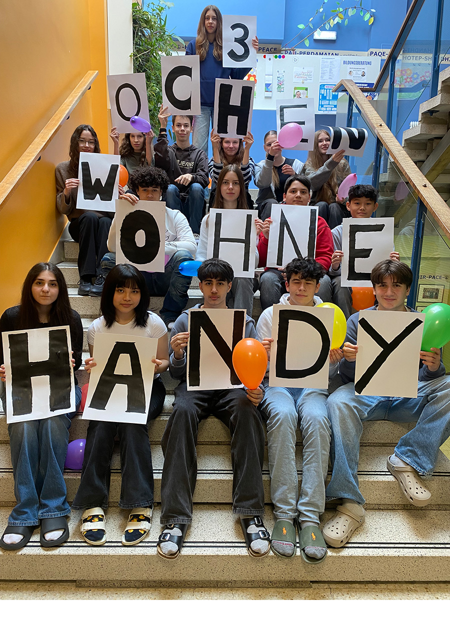 Im BE-Saal gab es noch einmal die Gelegenheit, sich von den Handys zu verabschieden – die letzten Videos wurden gedreht, die letzten Snaps verschickt, ein letztes Tippen, ein letztes Lächeln. Dann der Countdown … und mit einem gemeinsamen Moment wurden die Handys ausgeschaltet.